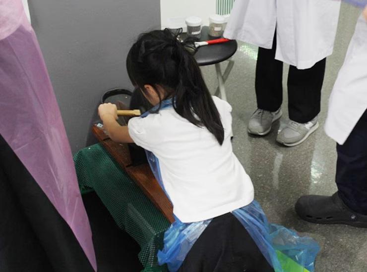 そのほか、薬学部の教員と学生のサポートのもと、漢方の味見や生薬を素材にしたハーバリウムや万華鏡の作成、そして古来の伝統的な道具を用いて生薬を粉末にする薬研(やげん)体験が行われた。