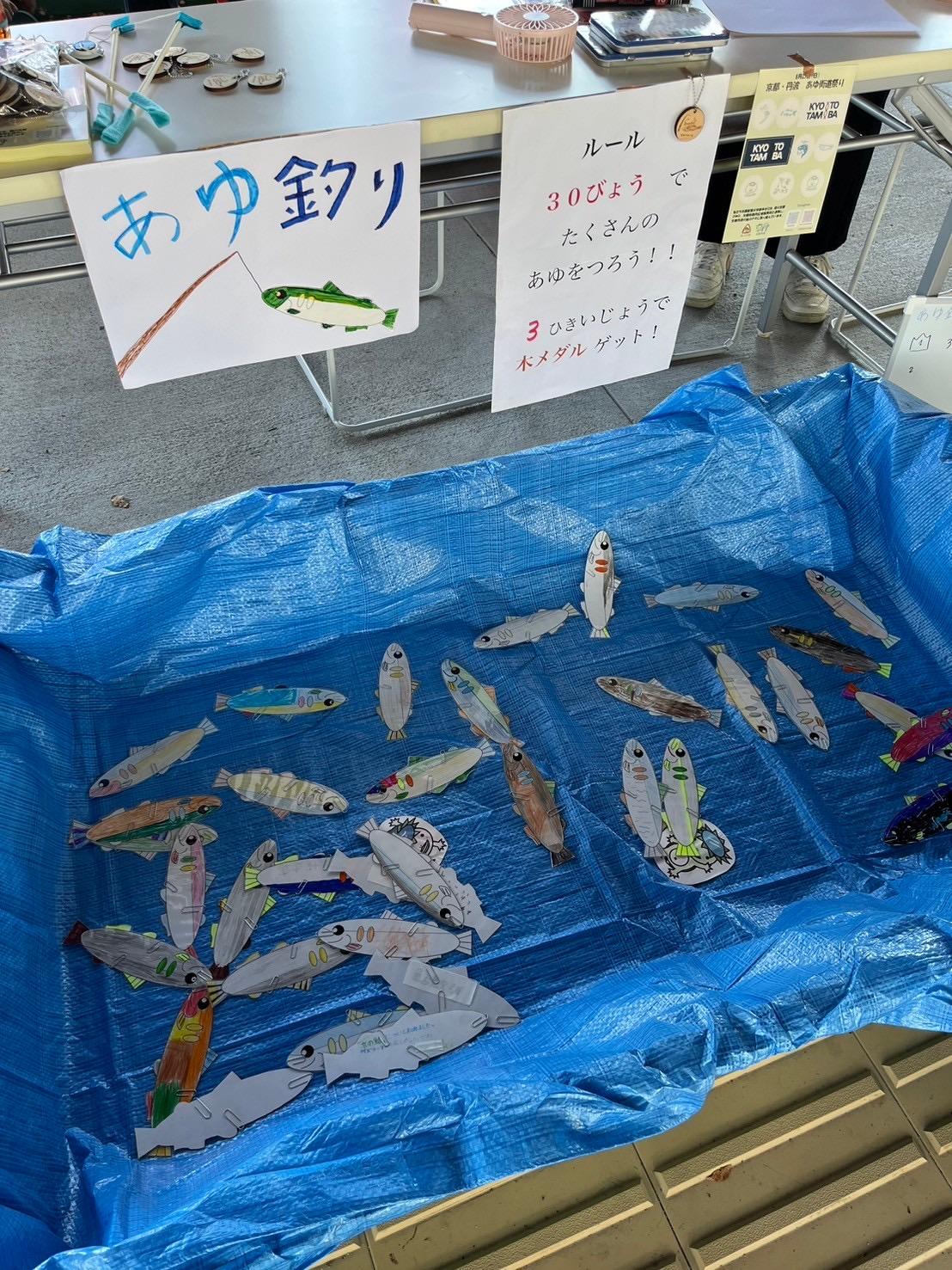 京都産業大学 現代社会学部 鈴木 康久ゼミ(専門:水文化)は「水が結び、新たな価値を生みだす社会」をテーマにさまざまな活動をしています。2024年度鈴木ゼミ6期生9人は、京都府南丹広域振興局や一般社団法人 森の京都地域振興社(森の京都DMO) 、京・来て観て丹波の会と連携し、京都府中部に位置する京都丹波地域をPRするために、新しい名物として期待されている「鮎」を主役にしたプロジェクトに取り組んでいます。「京都・丹波あゆ街道まつり」で「鮎」をテーマに子ども向けにさまざまな企画をした学生は、「子どもに親しみやすさを持ってもらえるよう鮎のデザインを工夫するなど難しさはあったが、納得できるものができた。祭りの参加者にこのプロジェクトを知ってもらい、鮎をもっと身近に感じて欲しい。」と語り手ごたえを感じています。