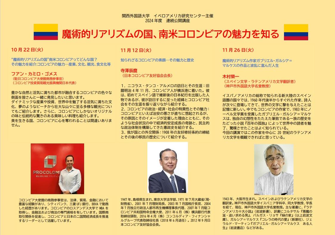 関西外国語大学で10月22日から南米コロンビアがテーマの公開講座を開催。オンライン視聴も可能です