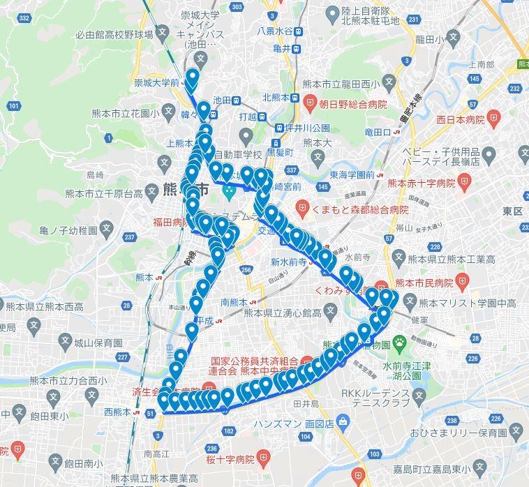 崇城大学 池田キャンパス ~ 江津湖 ~ 崇城大学 池田キャンパス(約30km)