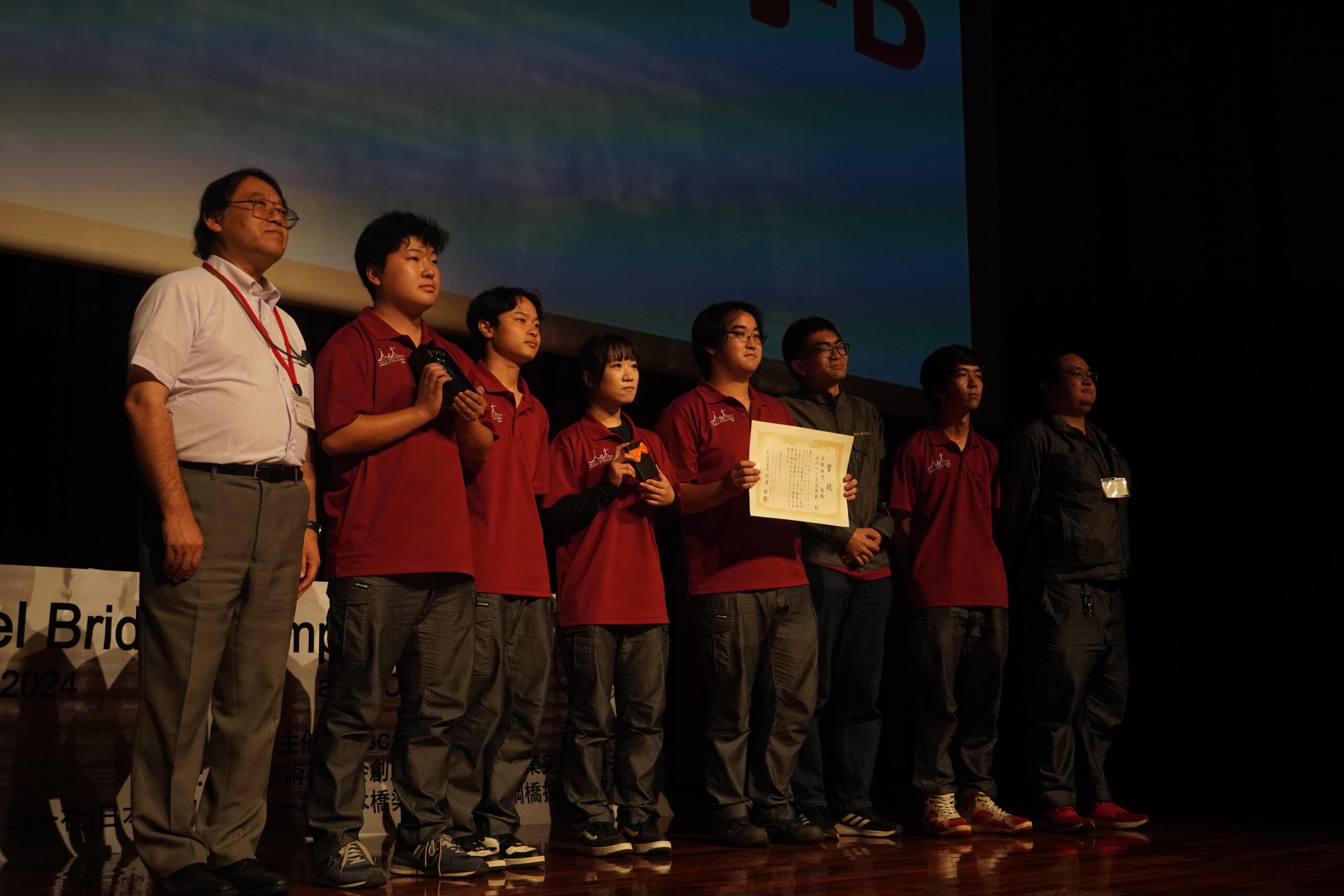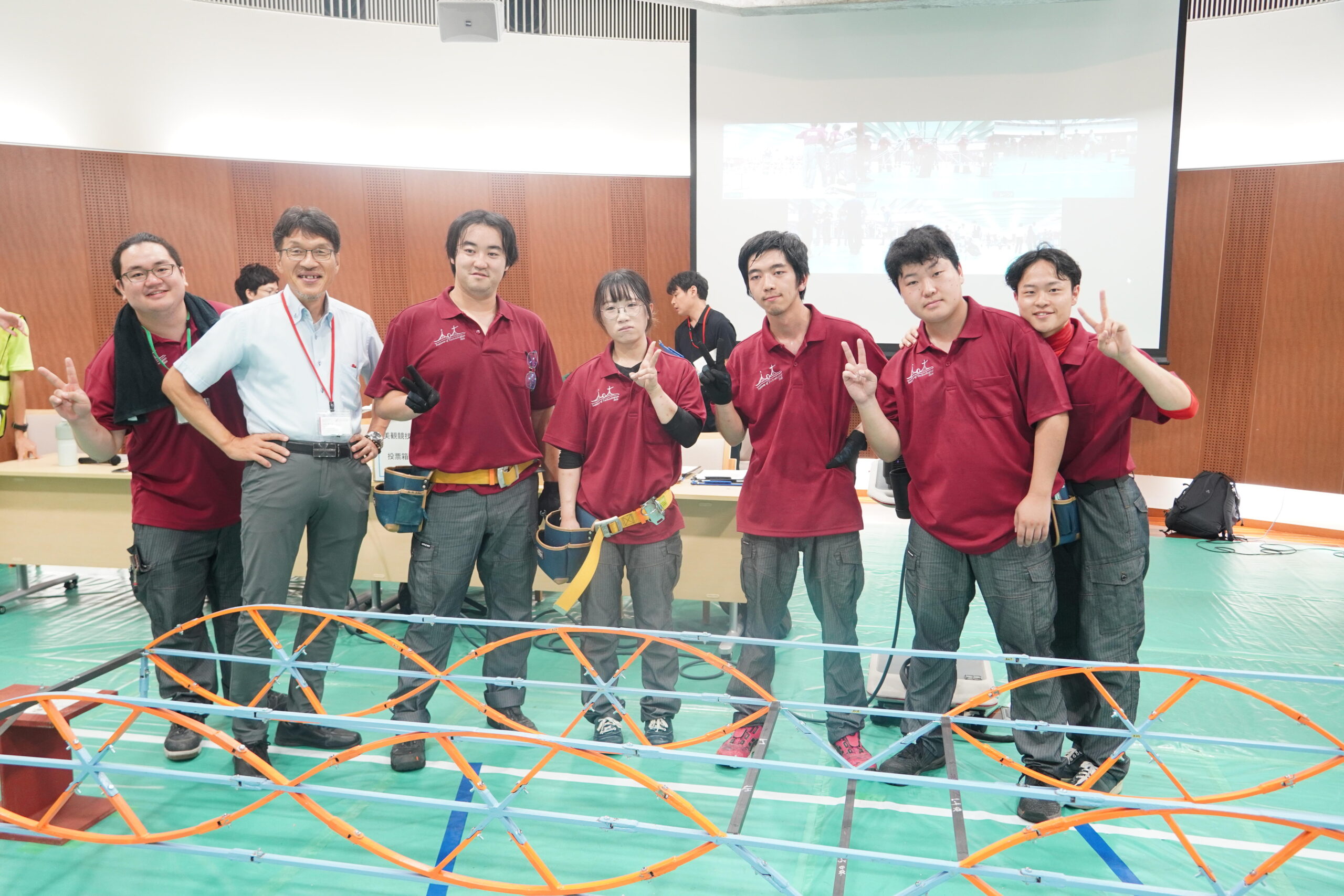 ものつくり大学からは、技能工芸学部建設学科に所属している学生の2チーム(Aチーム:4年生、Bチーム:3年生・大学院生)が出場しました。本学のBチームが製作した橋梁模型は、鋼材の加工のこだわりや、その仕上がりの美しさが評価され、美観部門1位という成績を収めることができました。