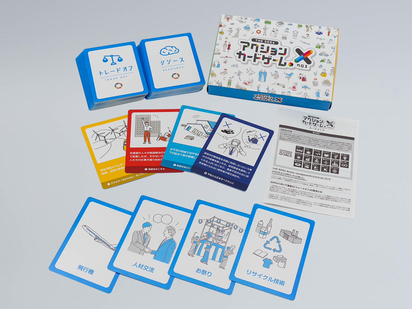 金沢工業大学では、文部科学省等の支援を受けながら、「THE SDGsアクションカードゲームX(クロス)」をはじめとする12種類のSDGsゲーム教材を開発しています。興味・関心があるSDGsゲーム教材を選び、実際に大学生と一緒に体験することができます。