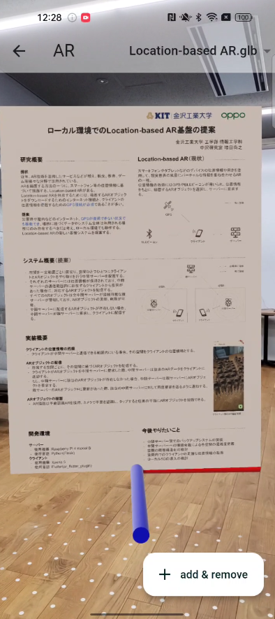 中沢研究室では、災害時や電波の届かない屋内といったインターネットやGPSが使用できない環境でも、場所に紐づくARオブジェクトが描画できる新たなLocation-based ARの基盤システムを提案しました。