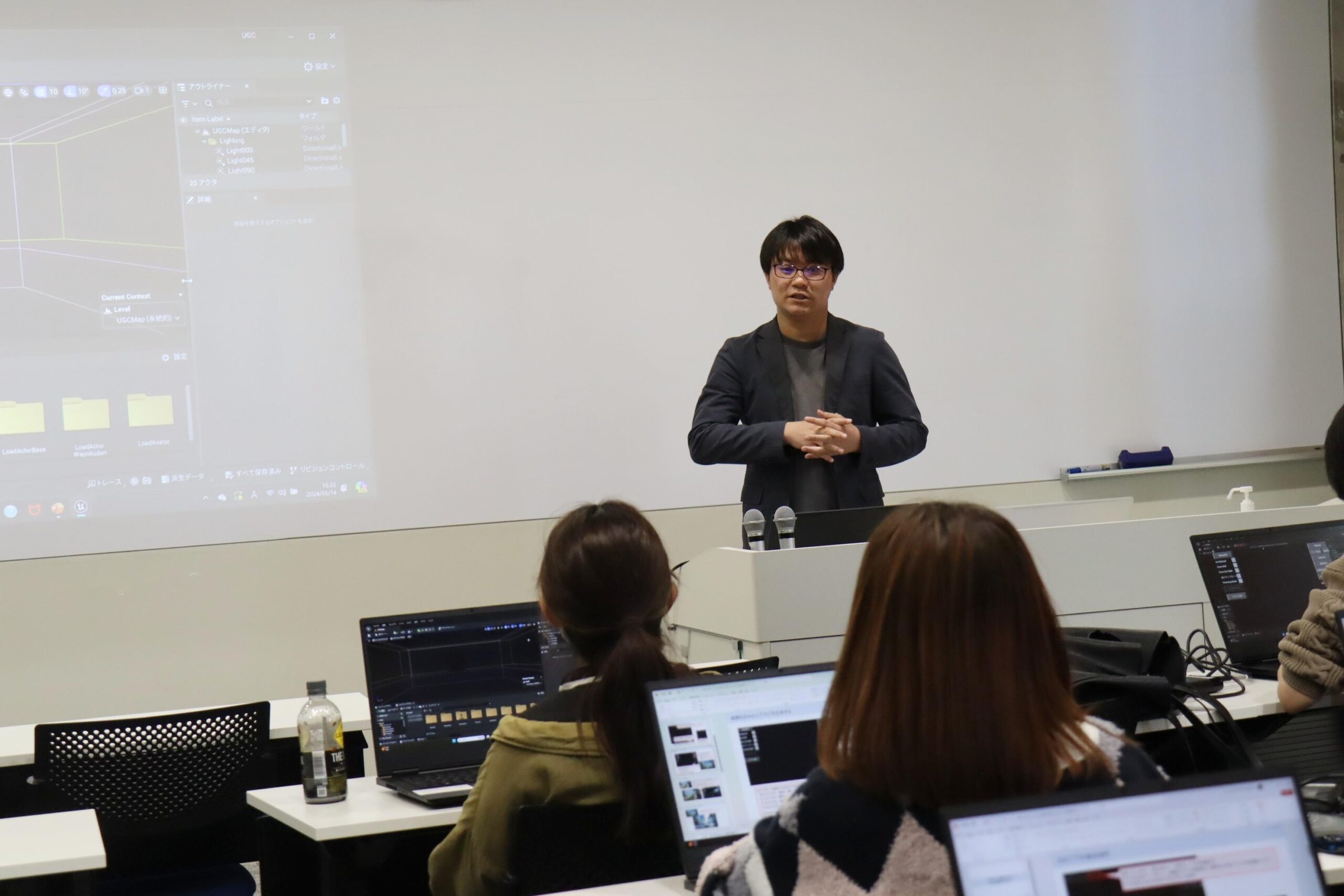 デジタル空間制作の技術指導には、データサイエンス教育研究センターと教育・研究協力協定を結んでいるJP UNIVERSE社https://www.jpuniverse.com/に協力をいただきました。同社とは今回の取り組みのほか、データサイエンス教育研究センター主催のワークショップや教育講演会にご協力いただくなど様々な場面で連携を行っています。