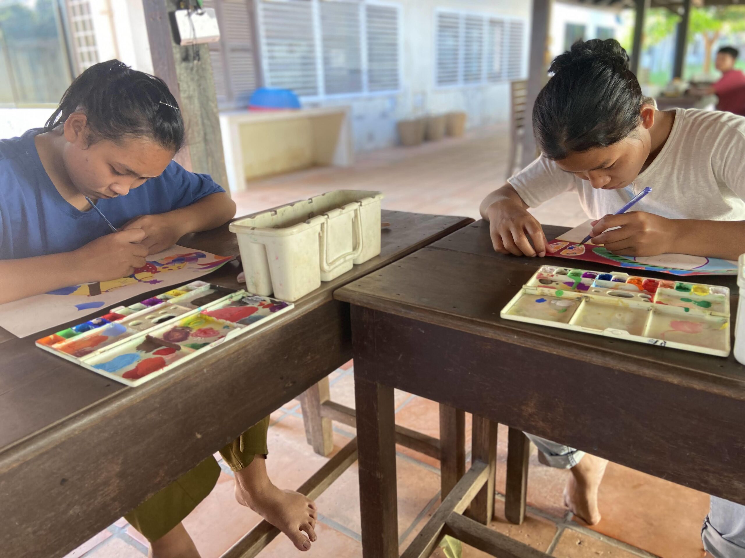 甲南大学卒業生が運営に携わるカンボジアの児童養護施設「スナーダイ・クマエ」の絵画展を開催