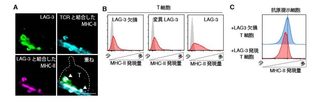 ・T細胞が、LAG-3を介した『トランスエンドサイトーシス』というひきちぎりの機序により、抗原提示細胞からMHCクラスII分子を奪い取る、全く新しい免疫調節機構を発見しました。