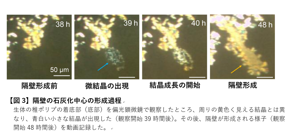 ・サンゴ稚ポリプの隔壁形成の開始時には結晶微粒子が出現することを報告