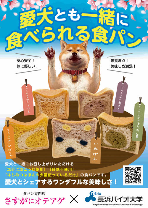 【長浜バイオ大学】犬といっしょに食べられる食パン「ワンだふる」が完成-食パン専門店「さすがにオテアゲ」と共同開発-