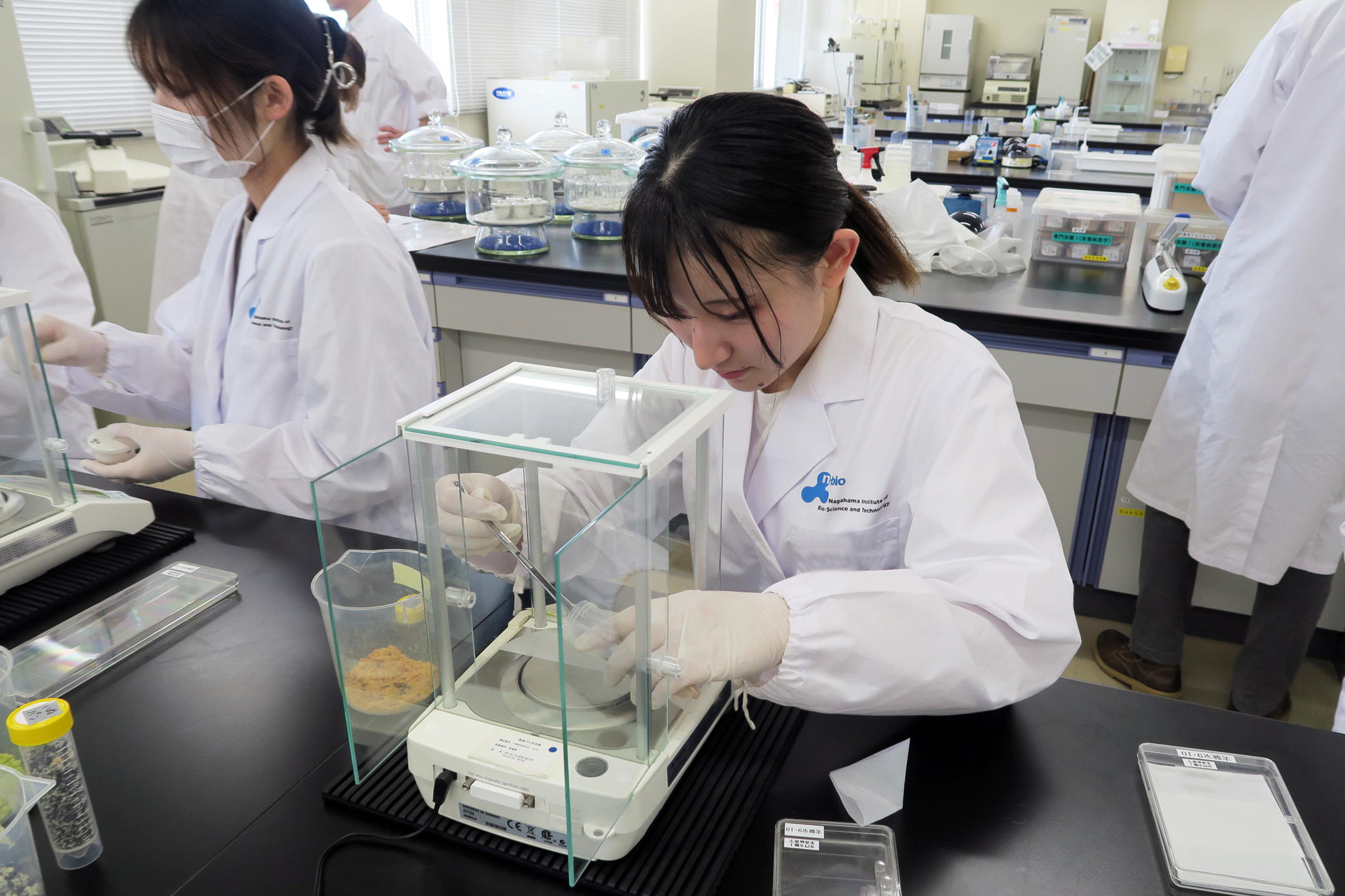 プロジェクトに参加する学生たちが6月に大学の実験室で成分分析(水分測定法、灰分測定法)を実施し、成分にもこだわりました。