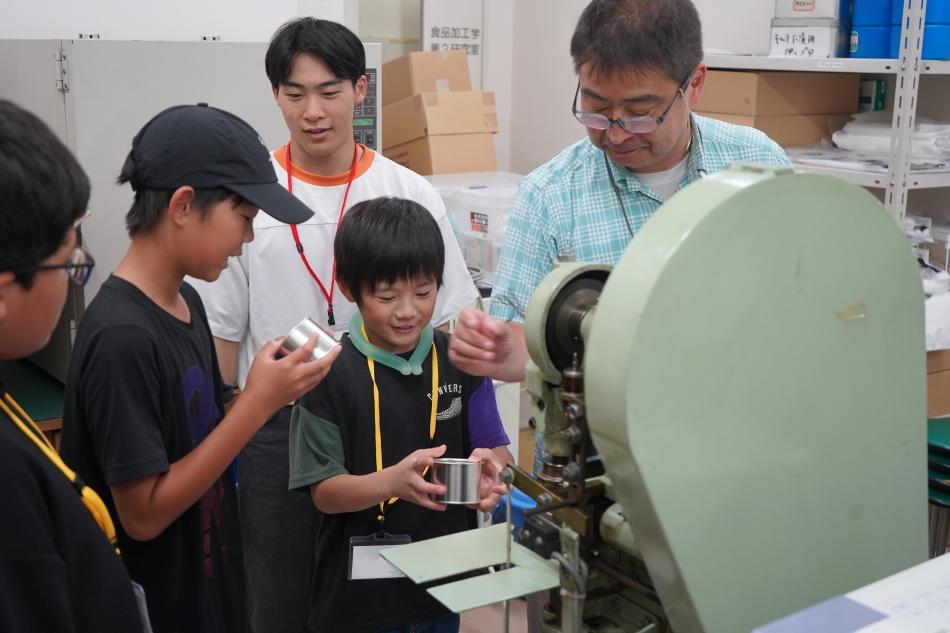講義の最後には将来の自分へのプレゼントとして思い思いのものを缶に入れ、専用の機械を用いた缶詰作り体験も行った。