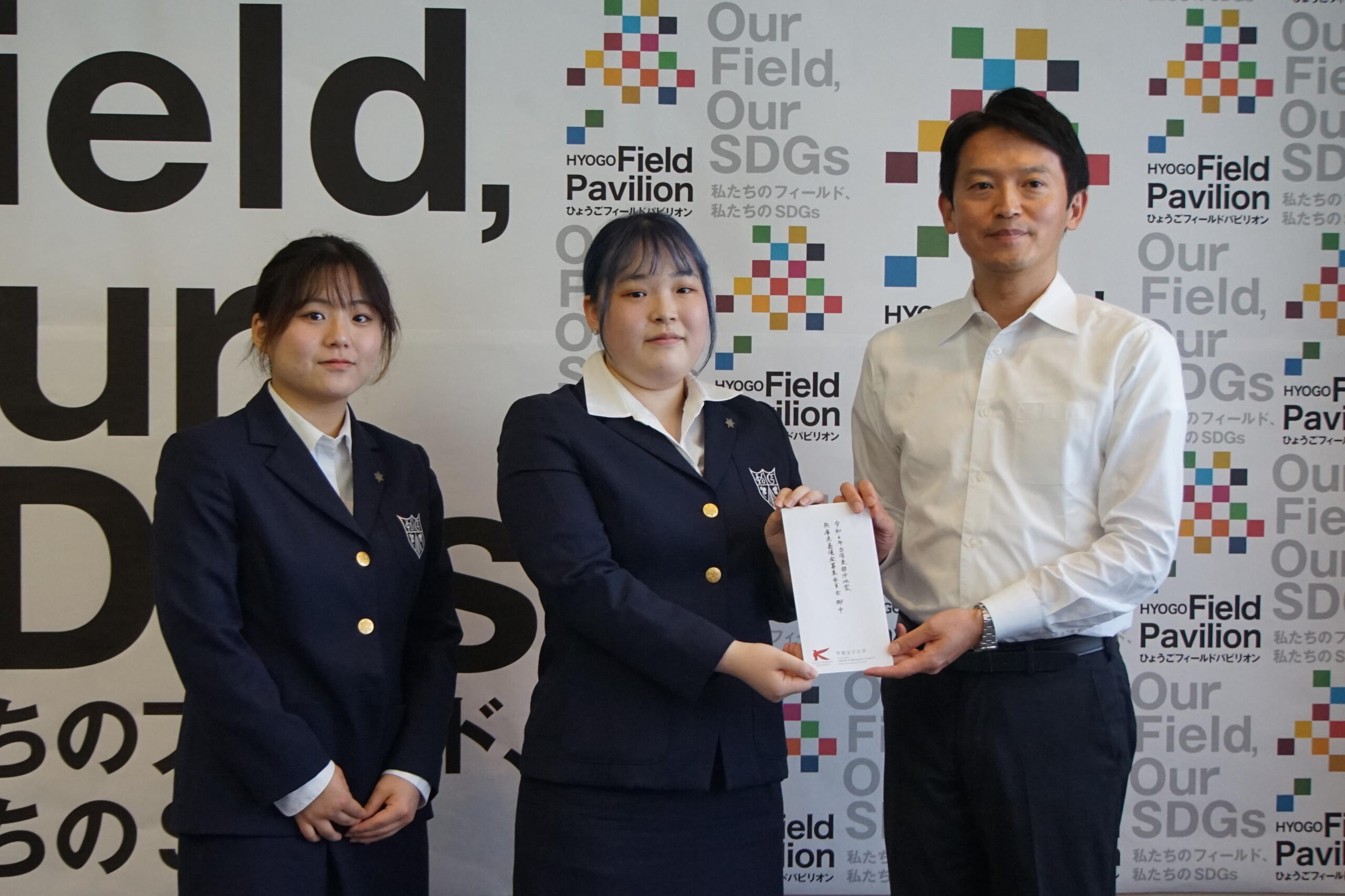 甲南女子大学 国際学部多文化コミュニケーション学科「行動演習」ゼミの学生らが、南京町商店街振興組合協力のもと台湾東部沖地震救援金募金活動を行いました。兵庫県主催の「令和6年台湾東部沖地震兵庫県義援金」を通じて台湾に寄付するため、7月26日(金)に兵庫県庁を訪れ、活動報告と義援金を贈呈。この活動に対して兵庫県より礼状を授与いただきました。