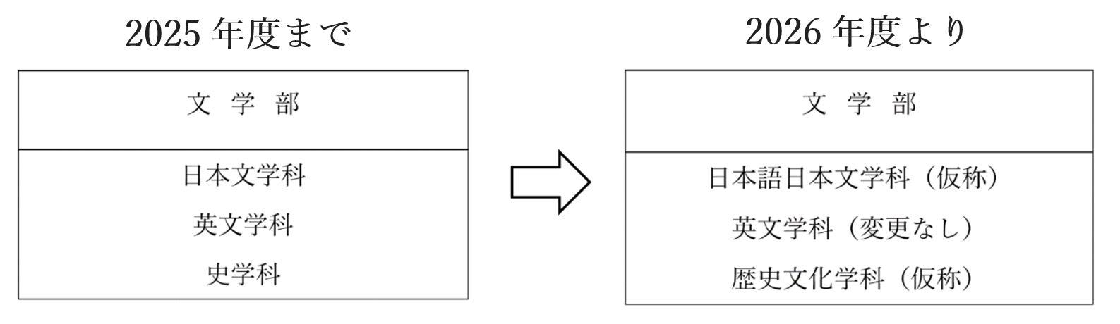 また、「文学研究科日本文学専攻博士課程(前期・後期)」「文学研究科史学専攻博士課程(前期・後期)」も同時期の名称変更を予定します。