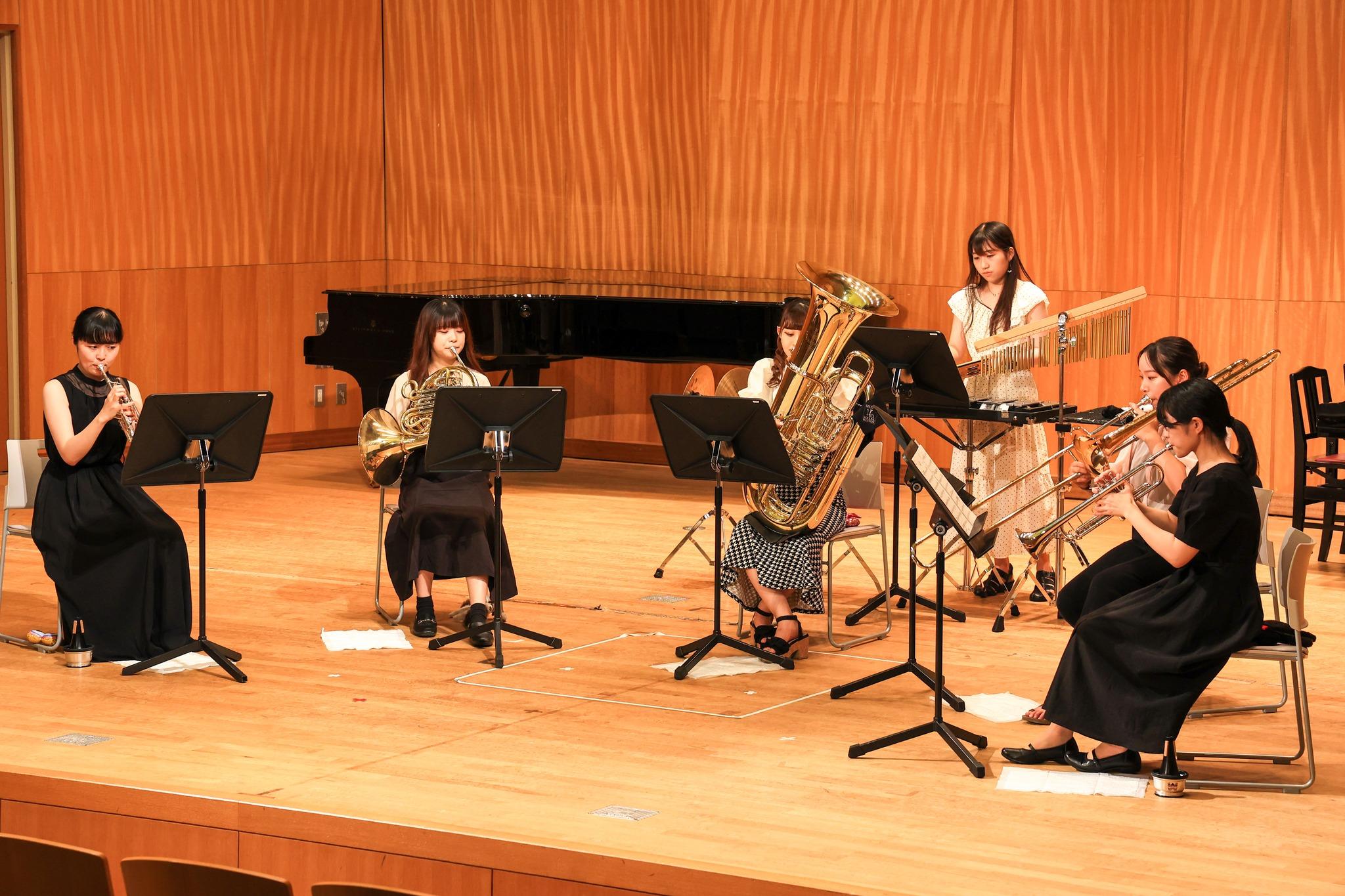 本コンサートは、春学期中の学修成果発表の場として開催。3年次生27名、4年次生1名、フェリス女学院大学国内交流学生1名が5グループに分かれ、演奏します。