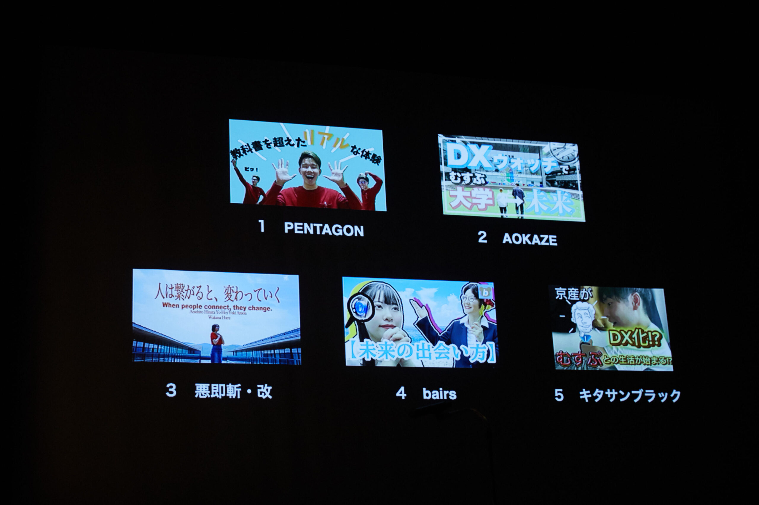 約2ヵ月の制作期間を経て開催された完成披露発表会では、安田大サーカスのクロちゃん、ソフトバンク株式会社 法人統括 法人マーケティング本部 本部長 上野 邦彦氏、黒坂学長が審査員となり、動画の講評が行われた。動画では、机上ではなく五感で学ぶ体感型授業や学生と教員の相性を図るマッチングシステム、大学生活から私生活までサポートしてくれるAIなど、学生が考えたデジタルトランスフォーメーション(DX)を活用した未来の大学生活が映し出された。動画には、クロちゃんが教員役で登場するものもあり、より学生の興味を引き付ける工夫がなされた。CM上映を通して視聴した学生からは、「学生生活で困っていた日常の出来事がDXによって未来で改善される内容となっており、未来の後輩たちに今後の大学に期待してほしい」などの感想が寄せられた。
