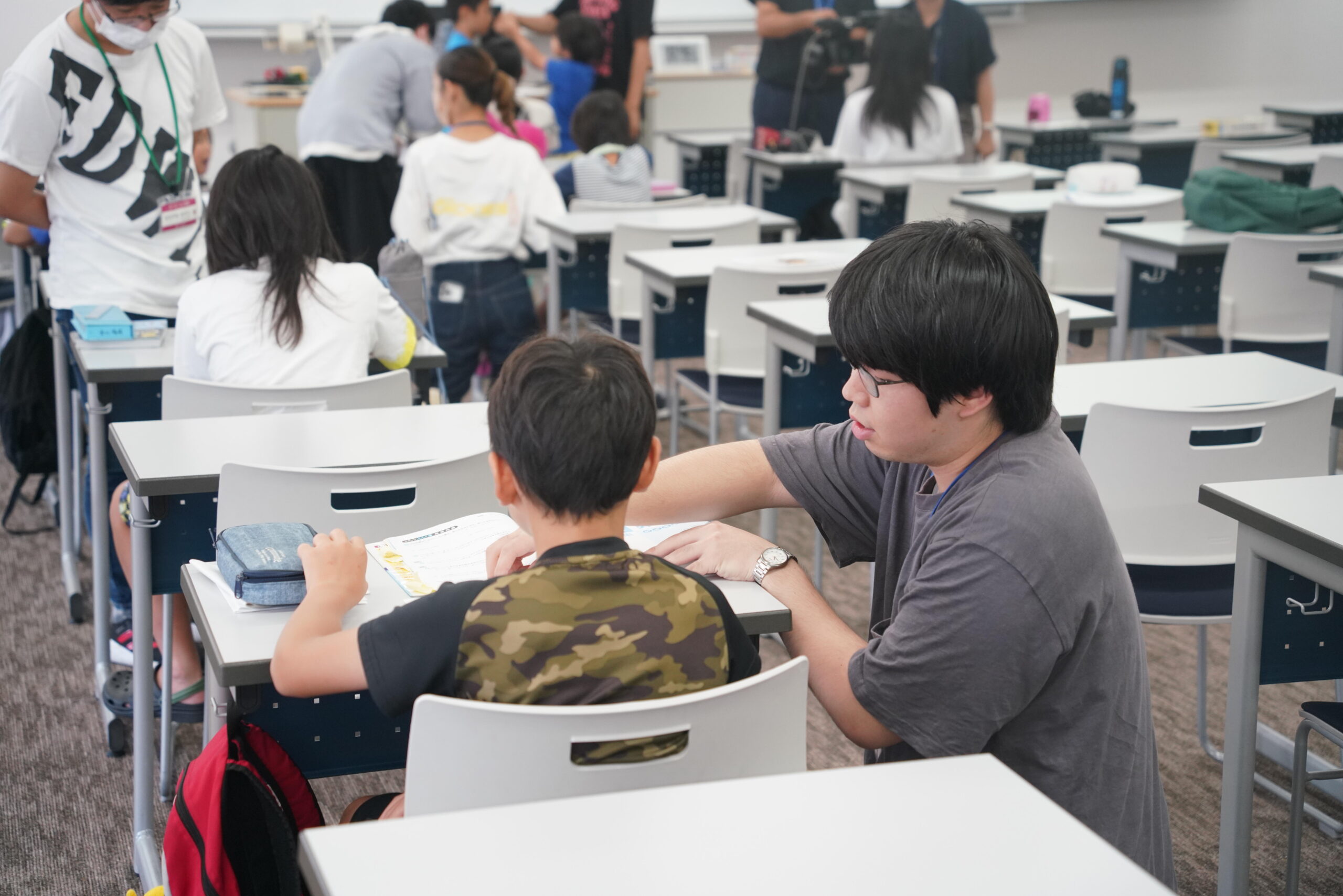 大阪経済大学では、学生の若い力を地域に還元するとともに、地域の人々とのふれあいを通じて得られる教育的効果の向上を図ることを目的に、「だいけいだい教室」を開催しています。本教室では、学生が講師となり子どもたちの日ごろの学習をサポートすることで”学ぶ楽しさ”の発見を手助けしています。