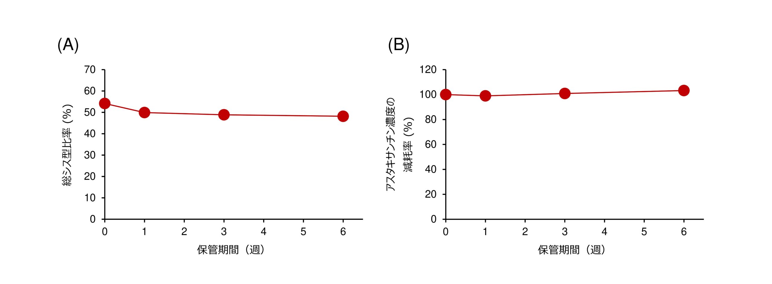 ・シス型アスタキサンチン(エステル体)は高い保管安定性を有することを実証。