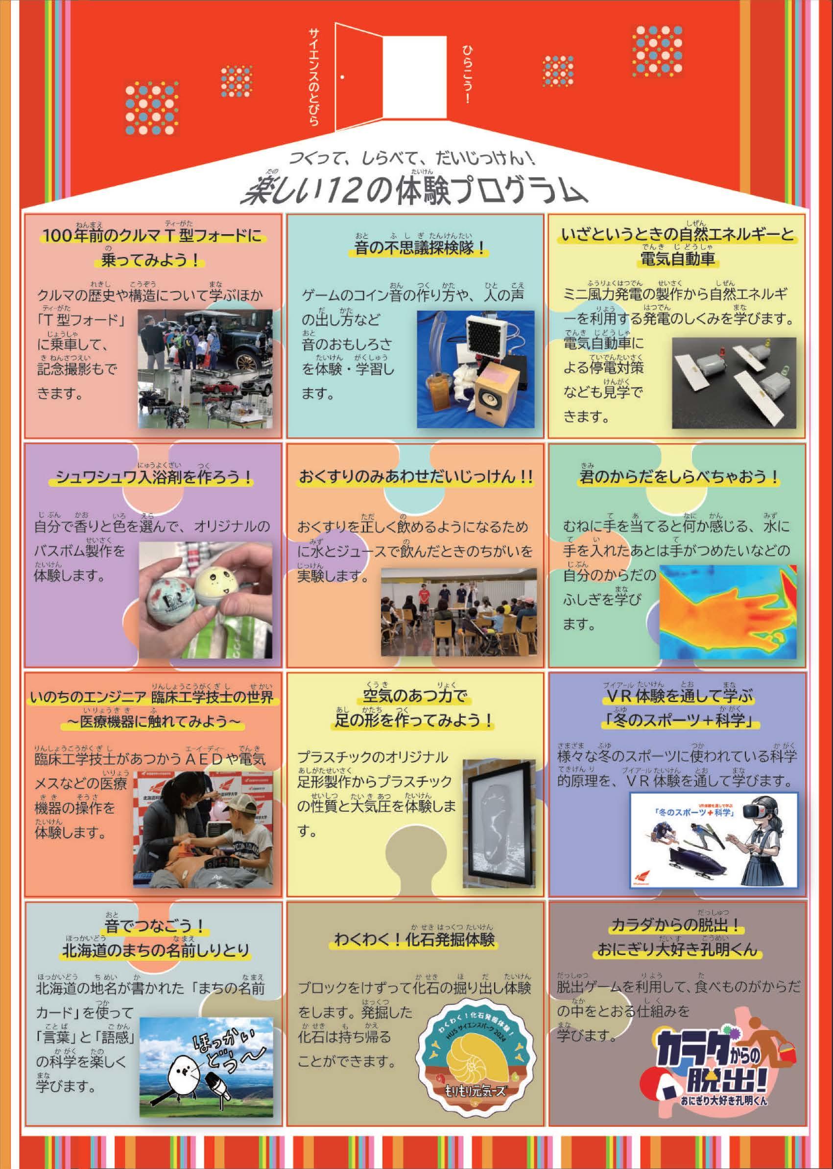 本イベントは「子どもたちの科学への興味促進」を目的に、科学やものづくりの楽しさを体験できる12のプログラムを実施します。