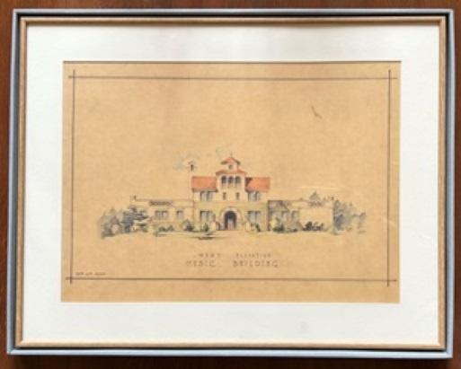 ・彩色画 音楽館外観パース、音楽館西側立面図、音楽館南側立面図