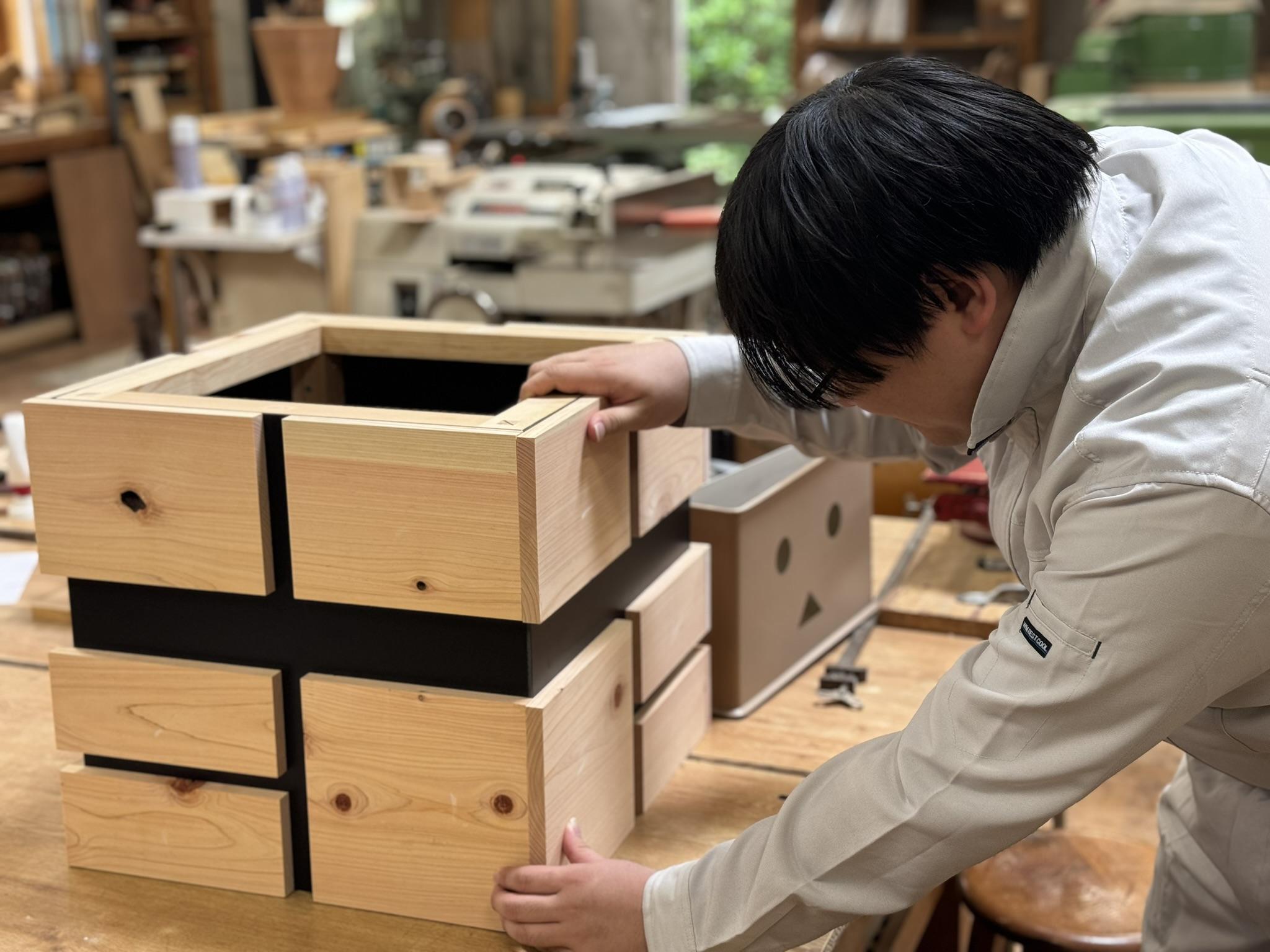 玉川産の木材など選定の調達は、緑豊かなキャンパスを活かし、木の輪(Mokurin)でつなぐ活動により地球環境の保全をめざす学内のプロジェクト「Tamagawa Mokurin Project」が、材料加工にはSTREAM Hall 2019にあるメーカーズフロア・芸術学部木工室の技術職員がそれぞれ協力し、このプロジェクトを支えています。