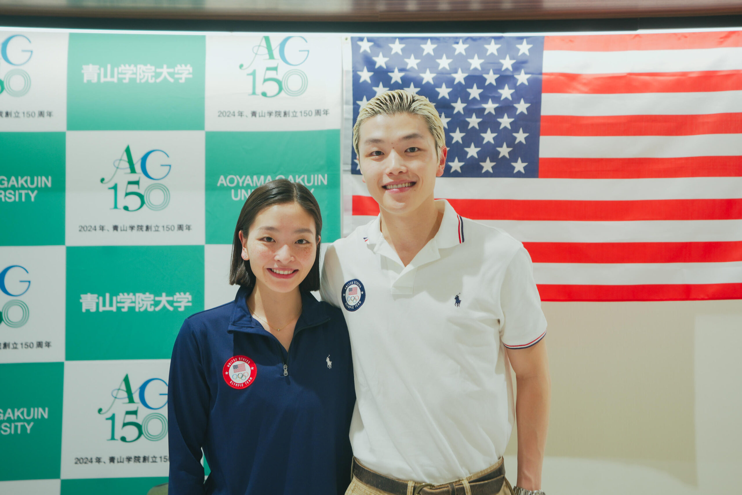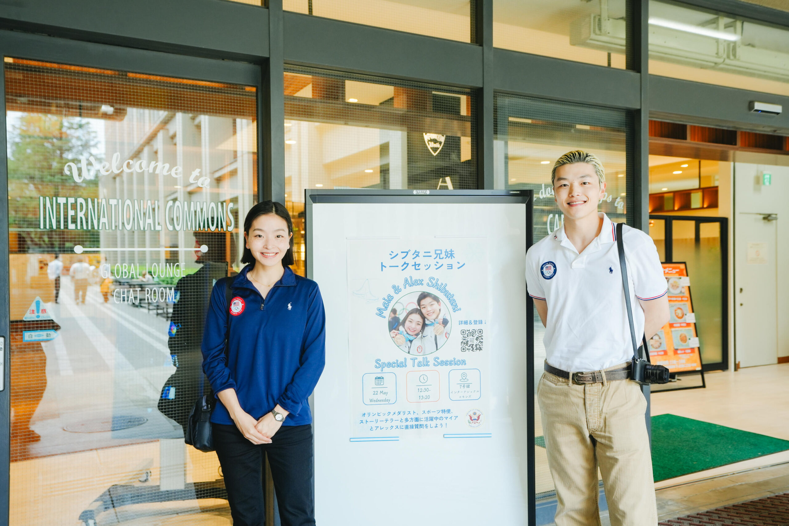 2024年5月22日(水)、青山学院大学 青山キャンパスに、日系アメリカ人で2018年平昌五輪フィギュアスケート(アイスダンス)銅メダリストのシブタニ兄妹(兄・アレックスさんと妹・マイアさん)が来校。在日米国大使館(U.S. Embassy Tokyo)とのコラボ企画で「Maia & Alex Shibutani Special Talk Session」を開催し、同大学生・交換留学生20人が参加した。