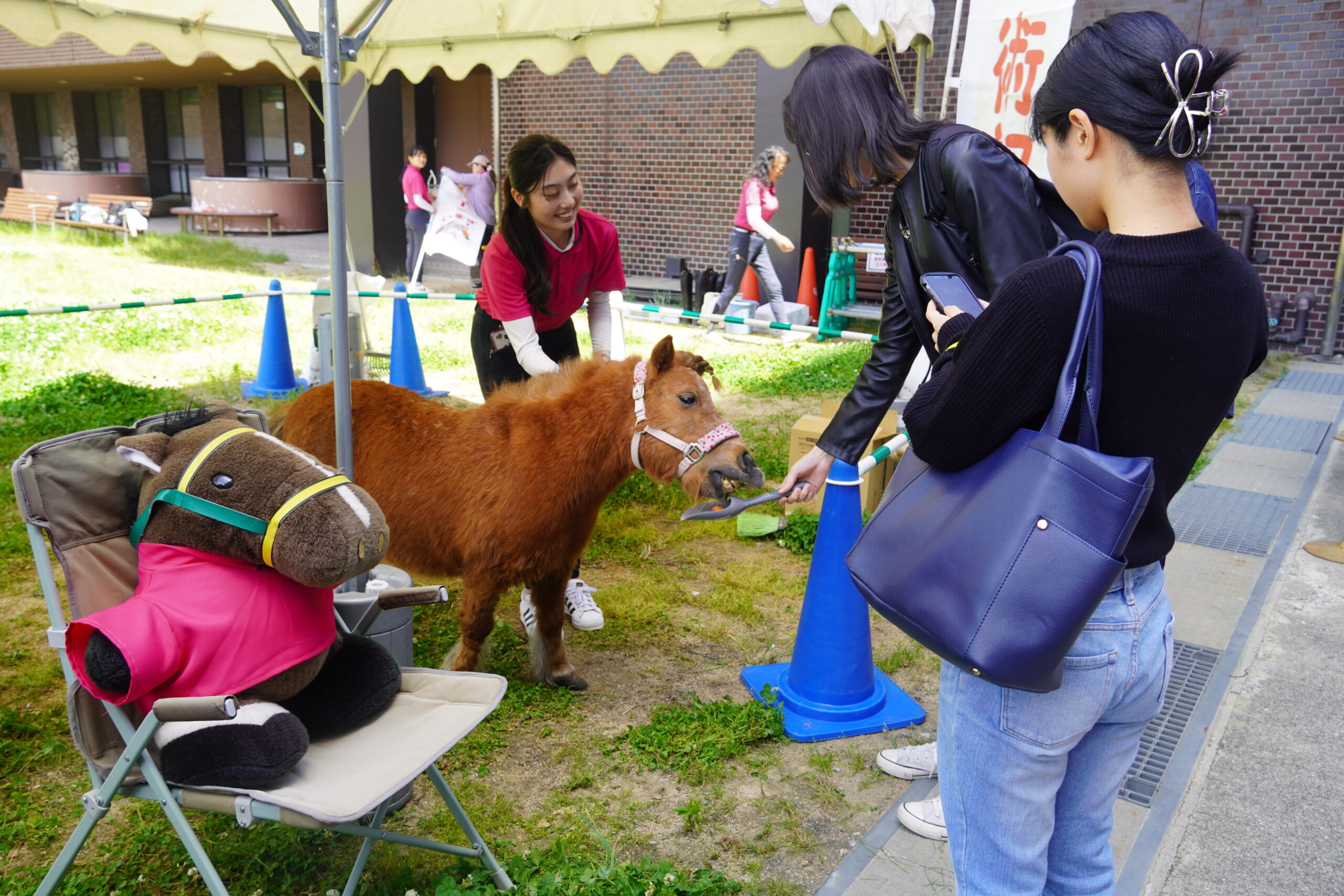 また、馬術部による「ポニーふれあい・餌やり体験」、手工芸部のハンドメイド雑貨販売、ボーリングや早押しクイズなど、一般の人や子どもも楽しめる新しいプログラムが充実。キャンパス各所にはキッチンカー7台が出ておいしい匂いを漂わせました。公江記念講堂では開会式直後にダンスユニットで人気の高いエグスプロージョンが登場し、サプライズ演出も学生の企画ならでは。学生が自ら動き、主体的に企画した祭典は、「体育祭」の枠を超えて笑顔あふれる濃密な一日になりました。