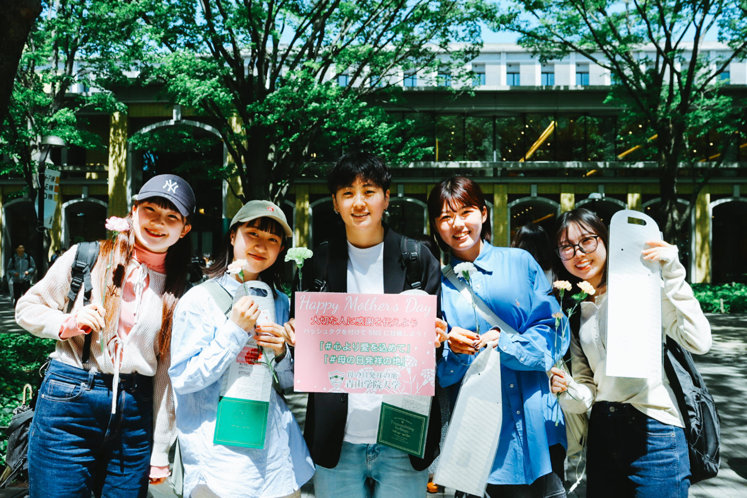 青山・相模原の両キャンパスに、合わせて約1000本の静岡県河津町産のカーネーションを設置した。集まった多くの学生たちがそれぞれの大切な方のために、色とりどりのカーネーションを摘み取った。メッセージカードも配布し、学生たちが大切な方への感謝の気持ちを綴った。
