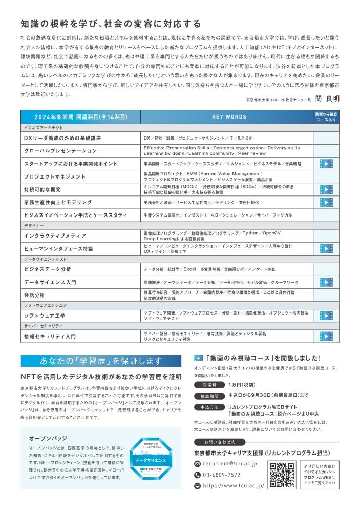 ■東京都市大学リカレントプログラム 概要