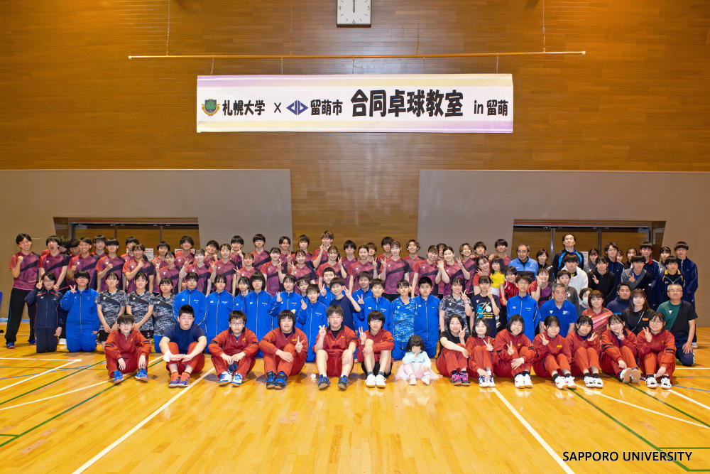 札幌大学が5月4日(土)、留萌スポーツセンターにおいて「札幌大学×留萌市 合同卓球教室in留萌」を開催しました。同大と留萌市とは今年の3月に包括連携協定を締結しており、今回の卓球教室は協定締結後初のイベントとなり、同大卓球部の強化合宿に合わせて実施されました。