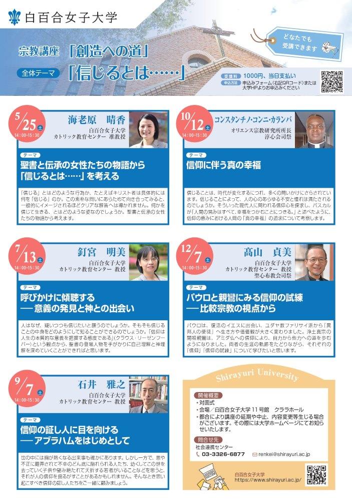 ■白百合女子大学 2024年度宗教講座 創造への道「信じるとは……」