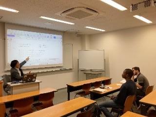 ①本学日本語教員養成課程在籍学生による、神戸情報大学院大学外国人留学生向けの教壇実習