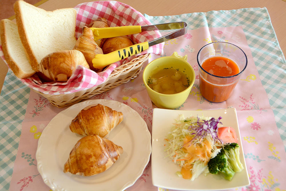 「ワンコイン(100円)朝食」は、朝食を摂る習慣を身につけることにより、長期休暇中に崩れがちな生活リズムを整え、規則正しい健康的な学生生活を送ってもらうことを目的としたもの。同大の学部生であれば、一人暮らし・自宅通学を問わず利用可能である。