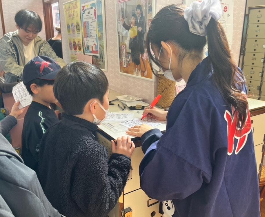 3月16日(土)、東京都文京区の大黒湯にて小学生以下を対象とした「銭湯大学 春の学園祭 縁日」が開催されました。本イベントでは、拓殖大学と跡見学園女子大学による合同プロジェクト「行こうよ!文京浴場♨️~学生プロジェクト~」の学生が文京浴場組合の協力の下、企画および運営を行いました。