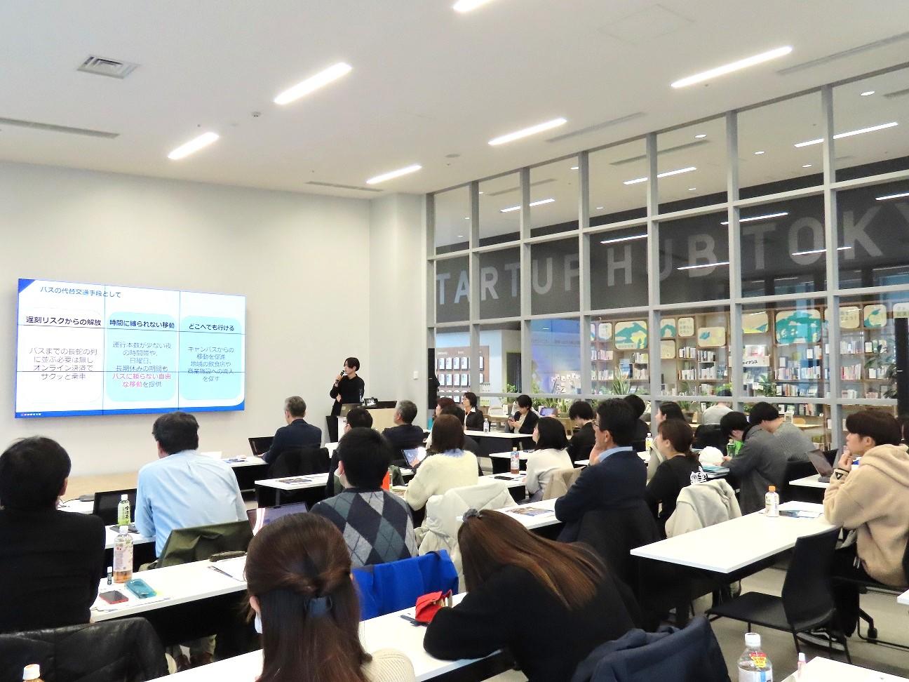 3月5日(火)、Startup Hub Tokyo(東京都立川市)にてソーシャル・イノベーションセンター(以下、SIC)教育プログラム「チェンジメーカーズラボ in 多摩(たまらぼ)」(以下、たまらぼ)の最終報告会”DEMO DAY”を開催しました。プログラムに参加している学生のほか、信用金庫や地方銀行などの金融機関、町田市や八王子市で地域活動を支援する組織なども参加し、会場に約50名が集まる活気のあるイベントとなりました。