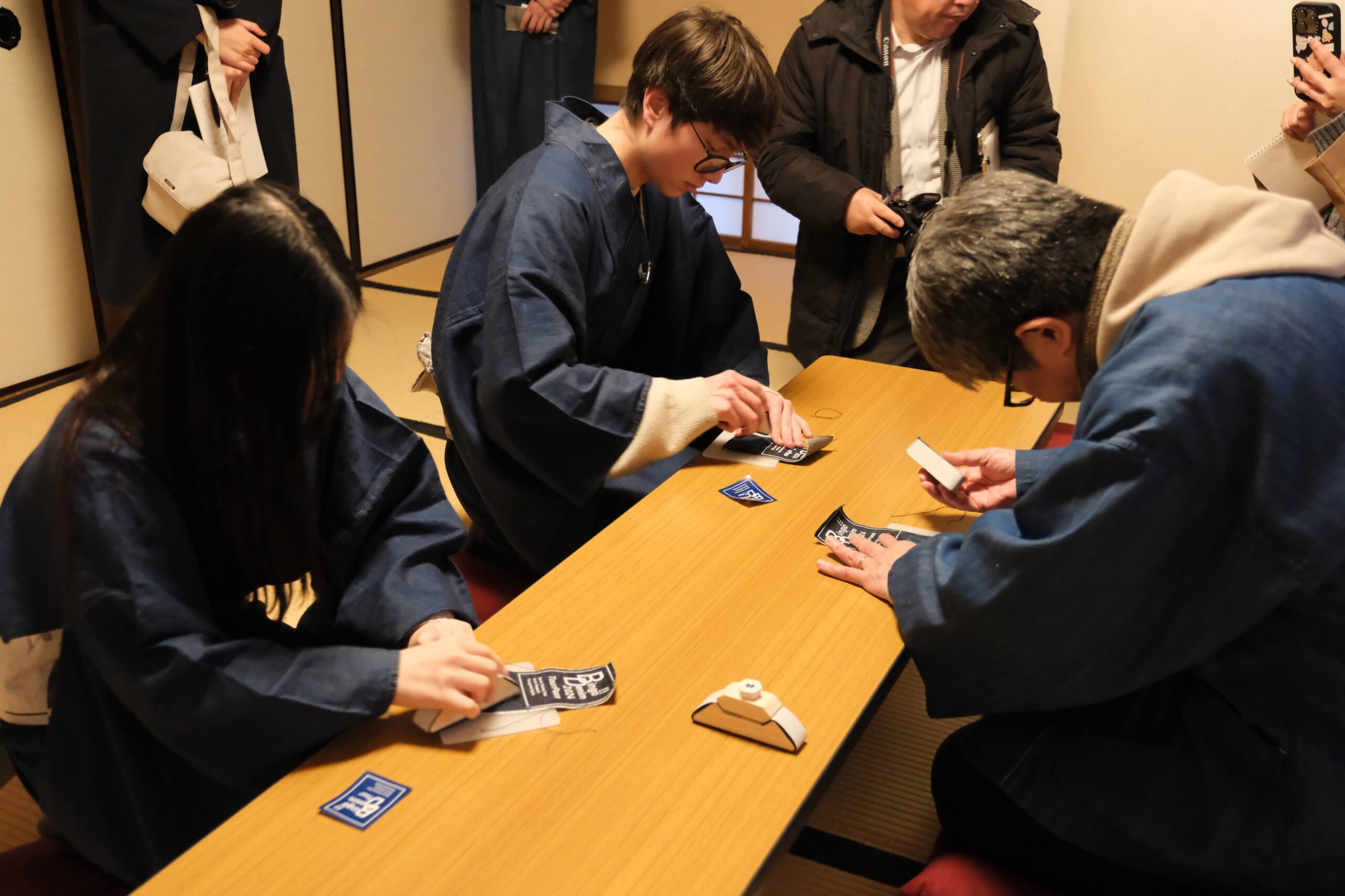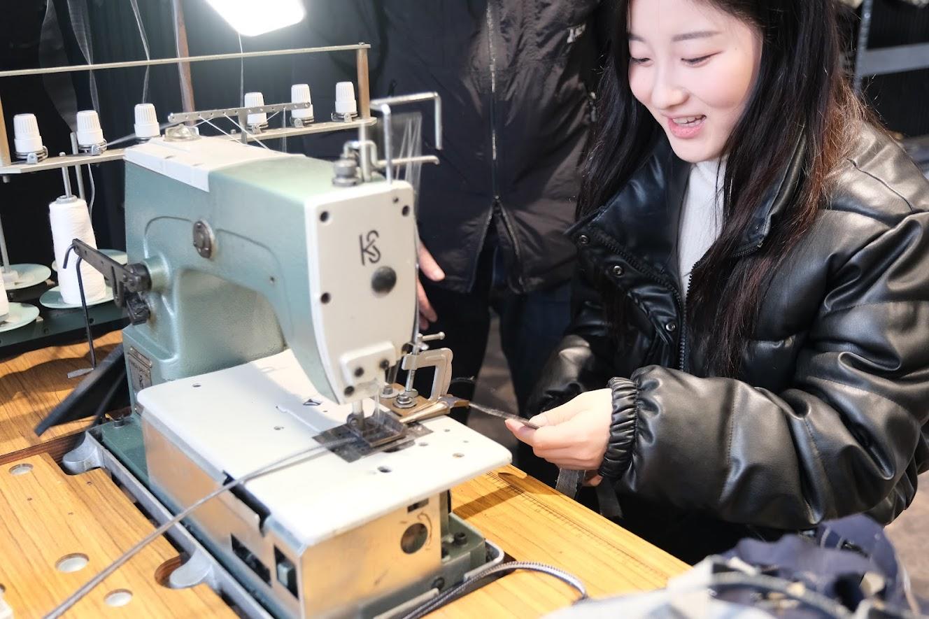 ツアー1日目では、日本最高級の品質を誇るデニムを五感を通して味わえる企画を行った。工場見学やデニム製品の生産者からお話を聞き、福山デニムの奥深さを学べる機会を設けた。デニムミュージアムでは、デニムを用いたアート作品の鑑賞や、生地にやすりをかけ、ダメージを施す体験を行った。そしてデニム生地の着物を着て、福山城で夕食をとり、デニム装飾が施されたホテルで1日の疲れを癒すプランにした。