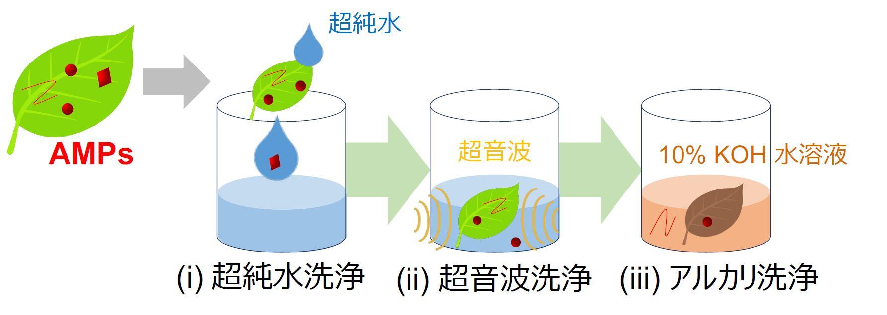 ◆ その結果、AMPsは葉面のエピクチクラワックス*3に強く吸着しており、超純水による葉面洗浄、超音波洗浄では除去しきれず、アルカリ試薬による除去が不可欠であり、先行研究ではAMPsの葉面捕捉量を過小評価していた可能性が明らかになりました。