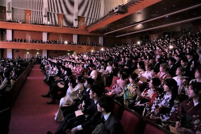 広島国際大学(学長:清水壽一郎)は3月15日、学位記授与式にボーカルユニット「ベリーグッドマン」を招きスペシャルライブを実施しました。今年度の卒業生はコロナ禍により入学式が中止となった学年(薬学部を除く)です。入学後もオンライン授業になるなど思い描いた大学生活を過ごすことが出来ませんでした。大学生活最後に思い出をと「大学」「後援会(保護者組織)」「校友会(同窓会組織)」の3者がスペシャルライブを企画し、本学を巣立つ卒業生840人にエールを届けました。