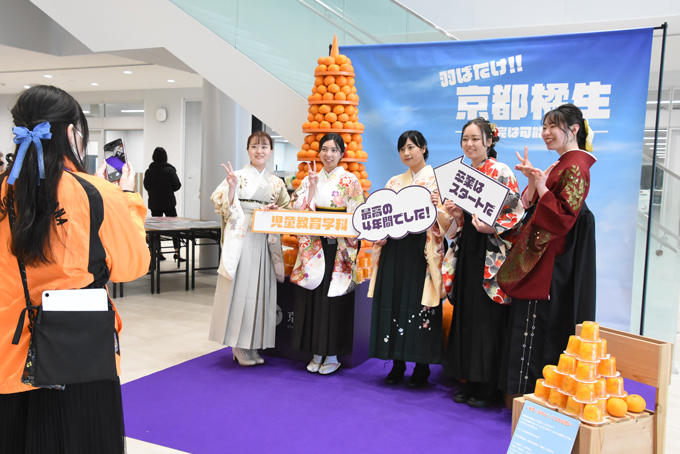 みかんタワー、卒業証書や京都橘大学ロゴのフォトスポットなどを設置しました。