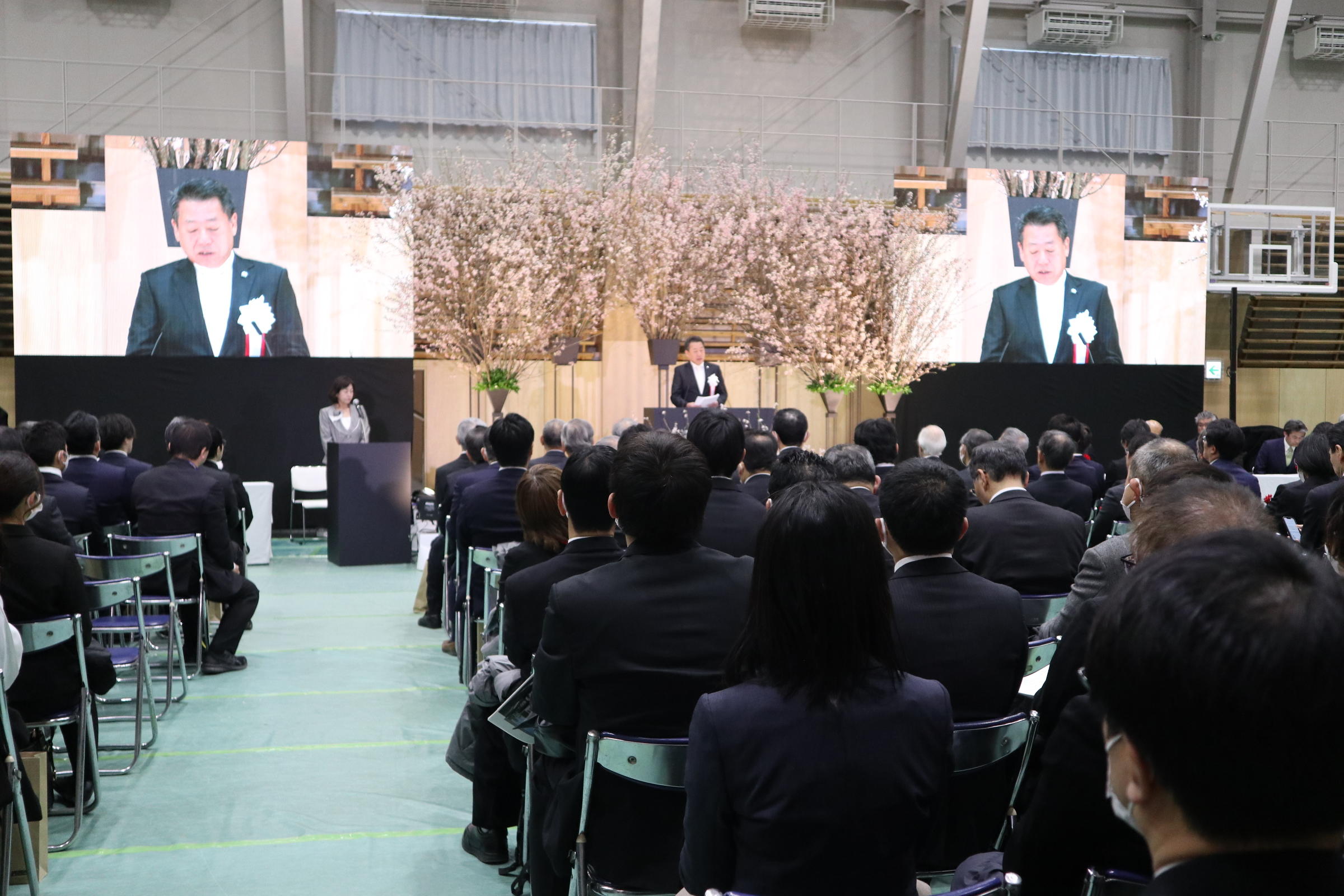ご来賓の末松信介様(第27-28代 文部科学大臣 参議院議員)からご祝辞を頂戴し、明浄学院高等学校及び学校法人藍野大学の今後の益々の発展に期待していただいた。