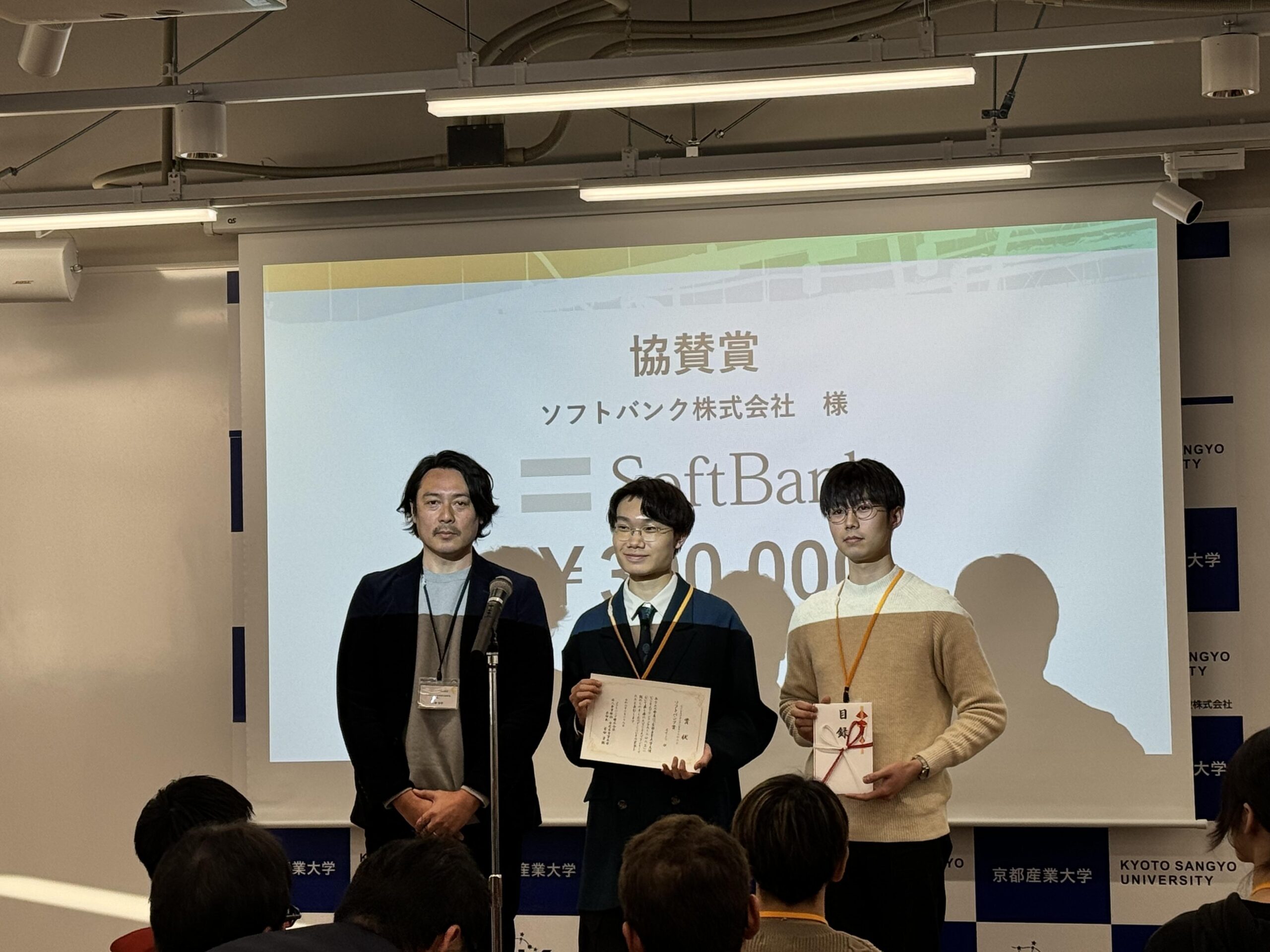 発表後には、厳選な審査が行われ、最優秀賞は該当なしという結果となったが、協賛賞(ソフトバンク株式会社、京都中央信用金庫)2組、優秀賞2組、特別賞1組が受賞し、表彰を行った。