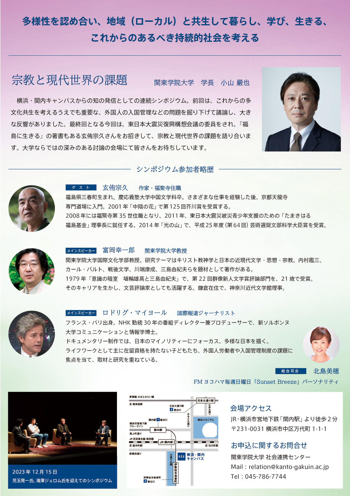 関東学院大学 横浜・関内キャンパス開校記念シンポジウム「ヨコハマから未来へ。#4 ~これからの多文化共生を考える~」開催のお知らせ