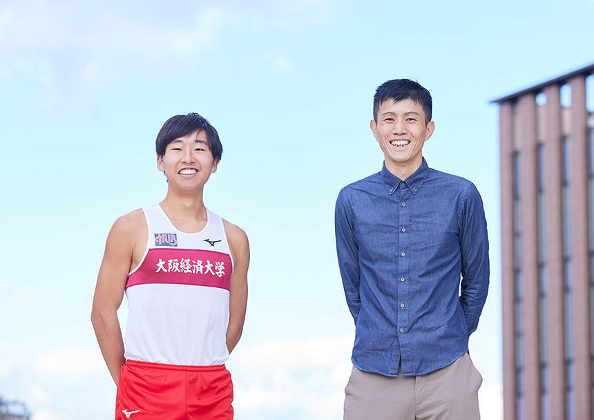 大阪経済大学の掲げる「創発」とは、一人ひとりの考えや行動が相互作用し、新たな価値が生まれることを意味します。今回の対談インタビューでは、今年度に活躍した体育会クラブのうち、陸上競技部と硬式野球部の指導者と選手に「創発」の視点からこれまでの活動を振り返っていただきました。