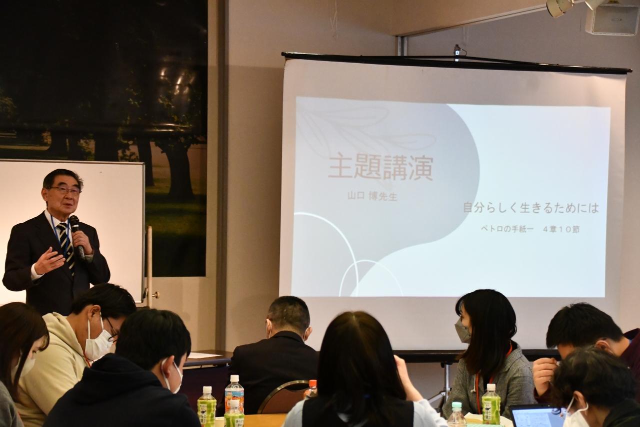 聖学院大学は前進となる女子聖学院短期大学時代から大切なキリスト教活動の一つとしてリトリートを開催してきました。4年ぶりの対面開催となる2023年度は、学生実行委員会により「自分らしく生きるためには」というテーマが選ばれました。実行委員長からは「クリスチャン、ノンクリスチャン関係なく、皆が心の中にある思いを分かち合い、少しでも心が救われるような時間にしたい」という願いが語られ、山口博院長による主題講演をもとにそれぞれの理解や思いを分かち合いました。