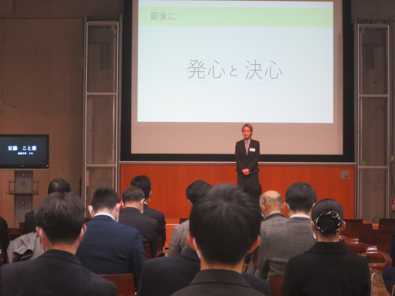 代表学生、個人による自己成長ストーリーのプレゼンテーションです。学生1名あたり5分。