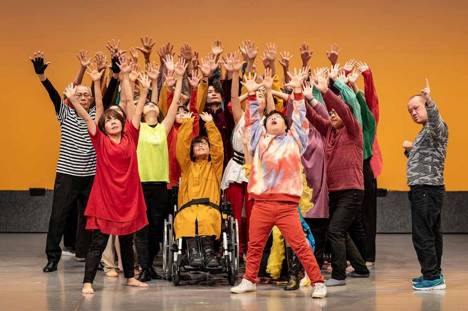 ○「義足のダンサー・女優」として活躍する森田かずよ氏を講師に、障害の有無に関わらず小学生から80代までの38人によるダンス公演