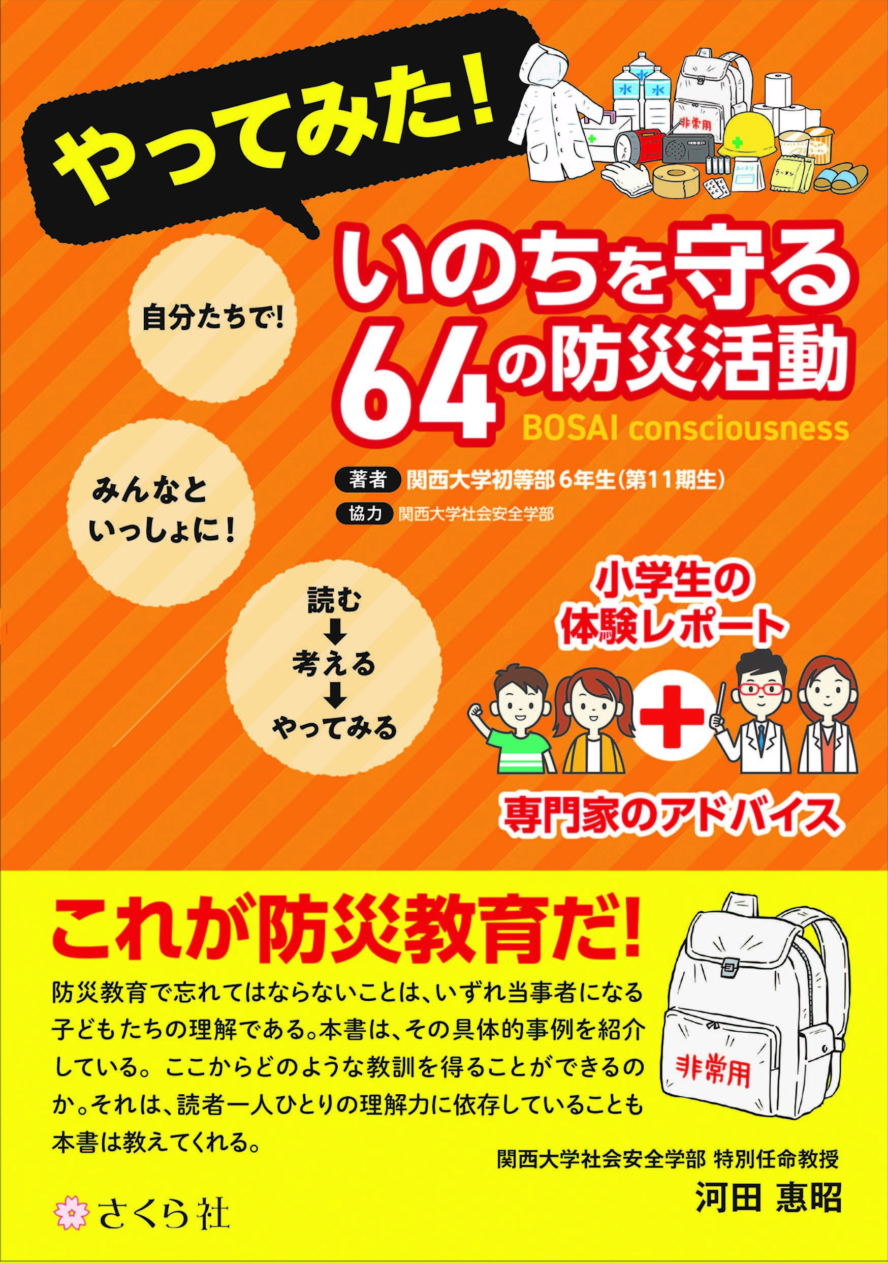 このたび関西大学初等部(大阪府高槻市)は、防災ブック『やってみた!いのちを守る64の防災活動:小学生の体験レポート+専門家のアドバイス』を株式会社さくら社(東京都千代田区)から出版します。2月9日(金)から、紀伊國屋書店 関西大学高槻ミューズブックセンターをはじめ、各種書店で販売します。