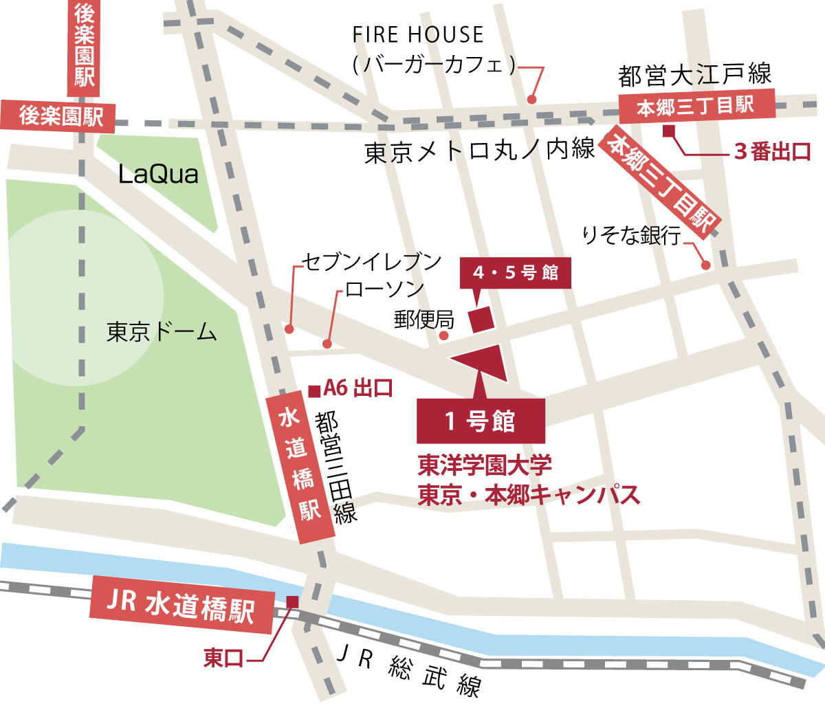 ・東京メトロ丸ノ内線/南北線「後楽園」駅(1~3番出口)から徒歩7分