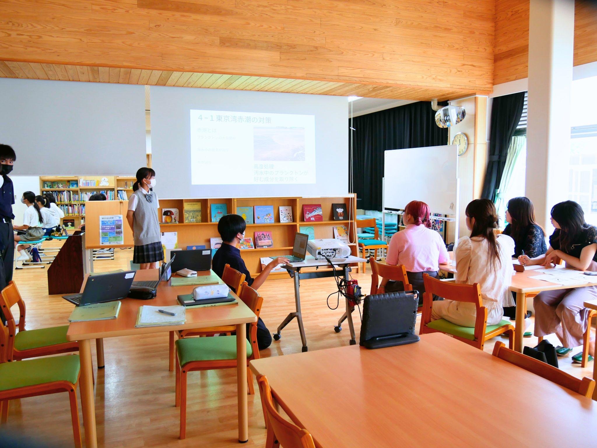 緑園学園8年生のポスターセッションに本学の学生が参加しました