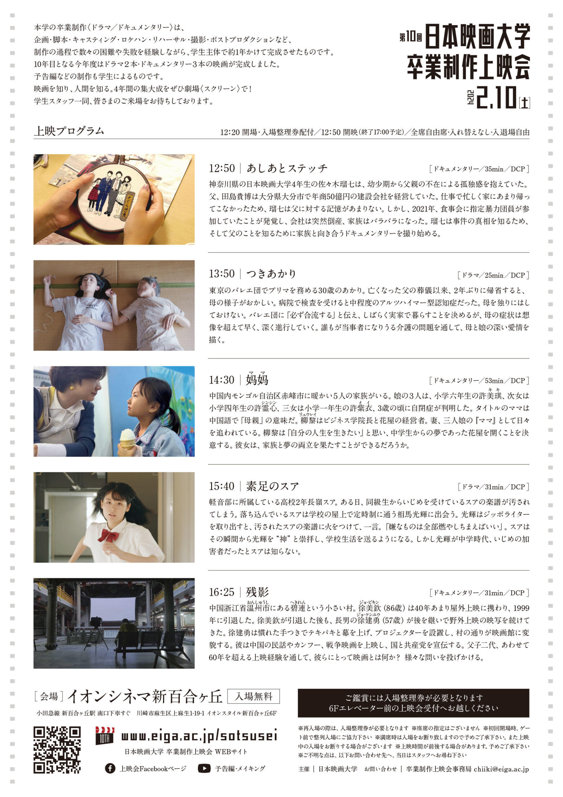 日本映画大学が2月10日にイオンシネマ新百合ヶ丘で「第10回卒業制作上映会」を開催