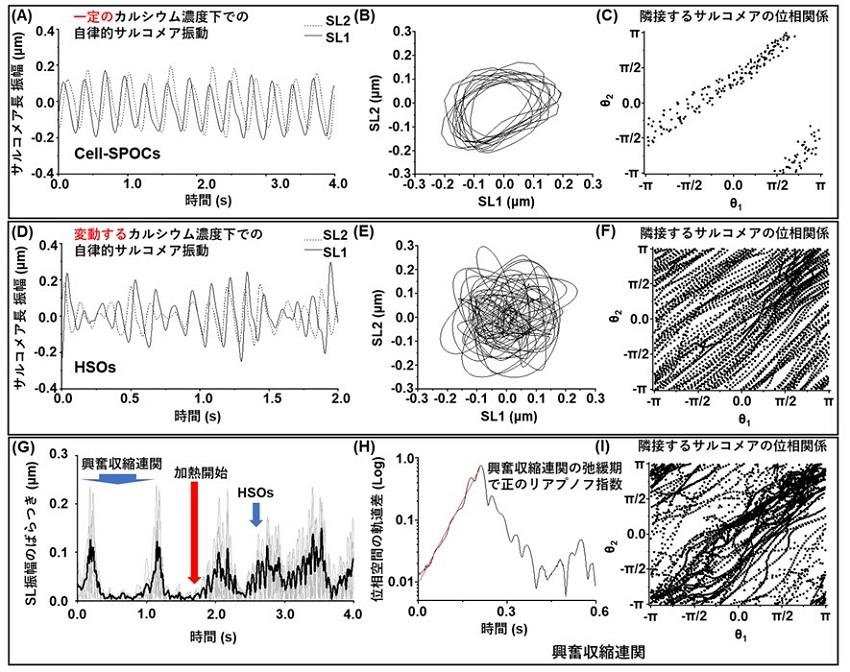サルコメアは、収縮と弛緩の中間状態で一定の張力がかかると、自律的に収縮と弛緩を繰り返す振動状態に入る。上述のHSOsも、温度上昇によってこの自律振動特性を顕在化させた現象である。心筋細胞の自発拍動における弛緩期初期では、細胞内カルシウム濃度が高く、多くのサルコメアが縮んだ状態にある中で、初期に弛緩するサルコメアにおいてこの自律振動特性が顕在化すると考えられる。そして、この時、カルシウム濃度も変動している。そのため、興奮収縮連関の弛緩期におけるS4Cは、HSOs時のS4Cと共通性が非常に高いと考えられる。実際、振動振幅の変動やリアプノフ指数の大きさも同等で、明確な区別は見られなかった。