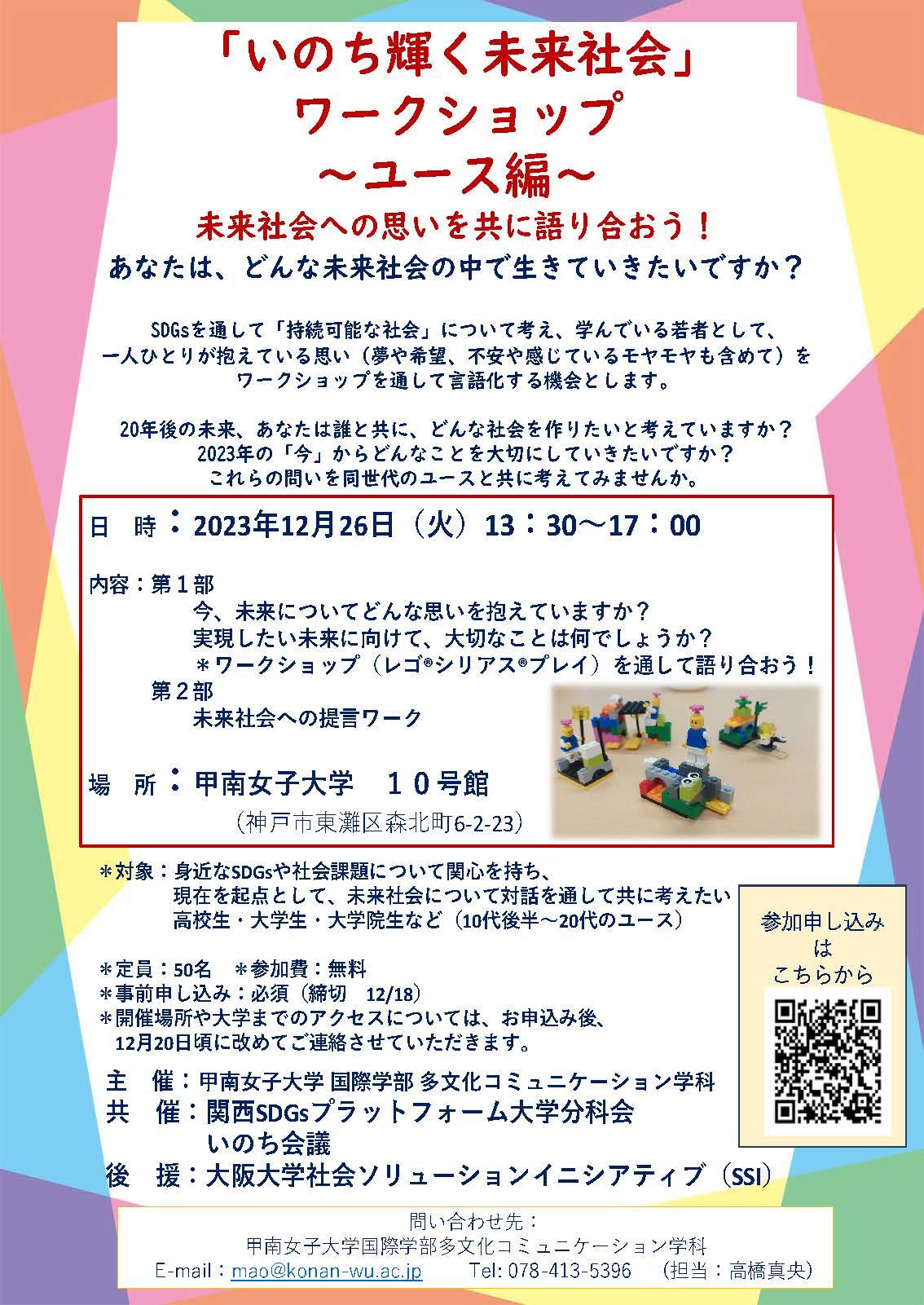 ▽「いのち輝く未来社会」ワークショップ ~ユース編~(※甲南女子大学公式Webサイト)